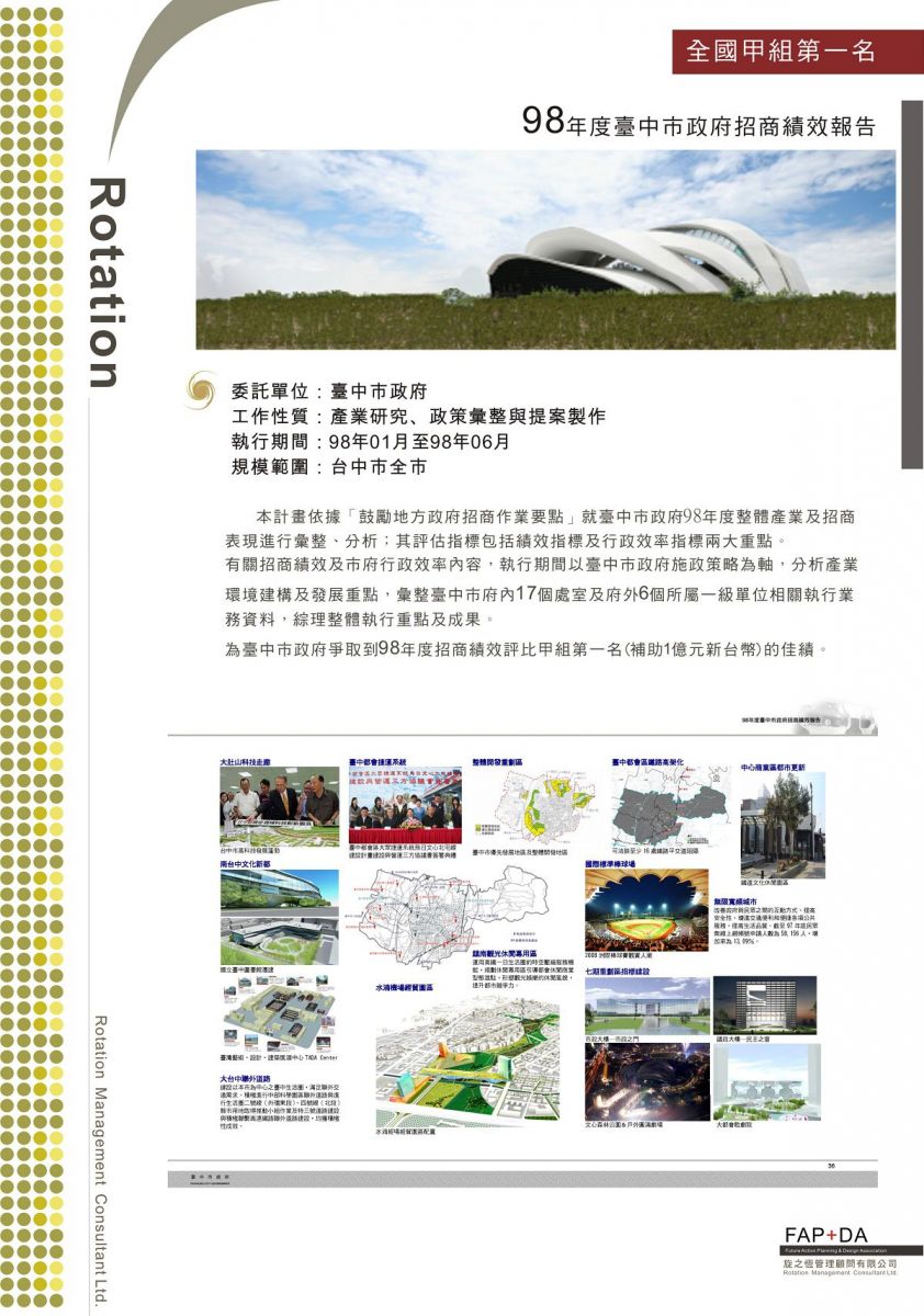 98年臺中市招商績效報告(甲組全國第1名)