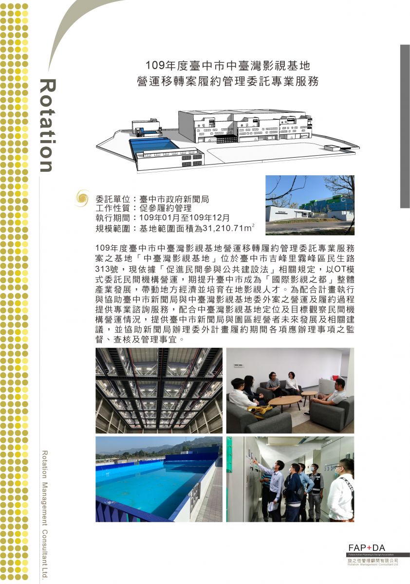 109年度臺中市中臺灣影視基地營運移轉案履約管理委託專業服務