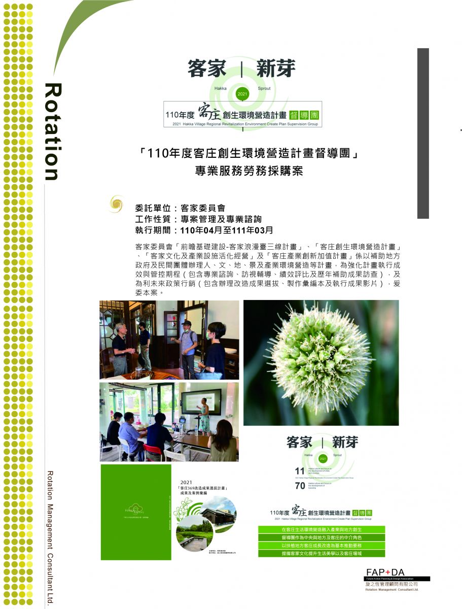 「110年度客庄創生環境營造計畫督導團」專業服務勞務採購案