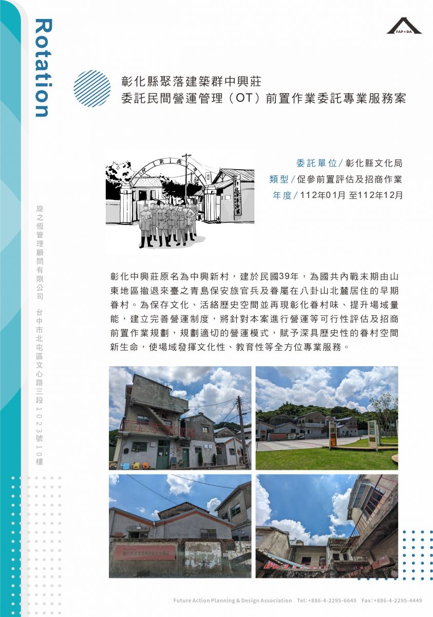 彰化縣聚落建築群中興莊委託民間營運管理(OT)前置作業委託專業服務案