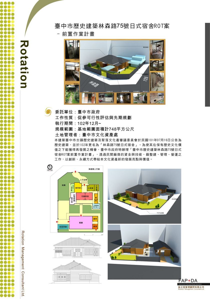 台中市西區林森路75號日式建築促參委外營運前置計畫(ROT)